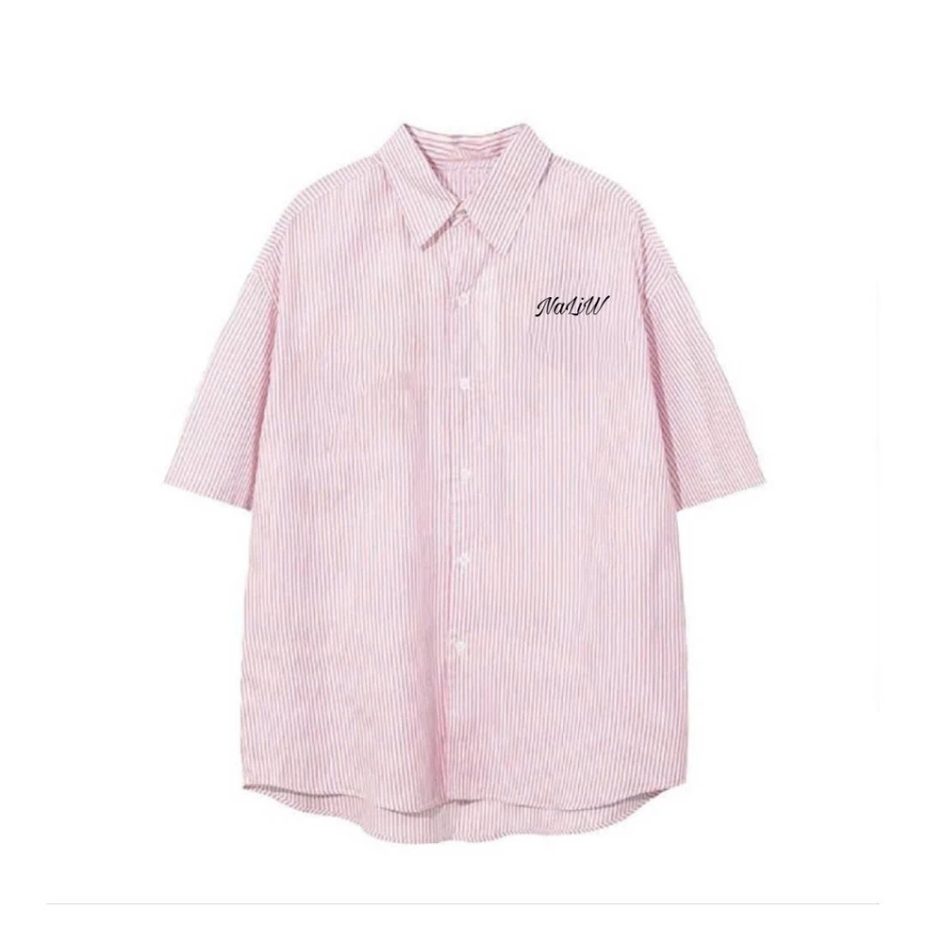 Áo Sơ Mi Kẻ Sọc Ngắn Tay Thêu Hoạ Tiết NaLiW Unisex